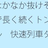 - なかなか抜けそうで長く続くトンネル 快速列車ダイヤを確認しながら横にはカップのアイスコーヒー おすすめ作品!!